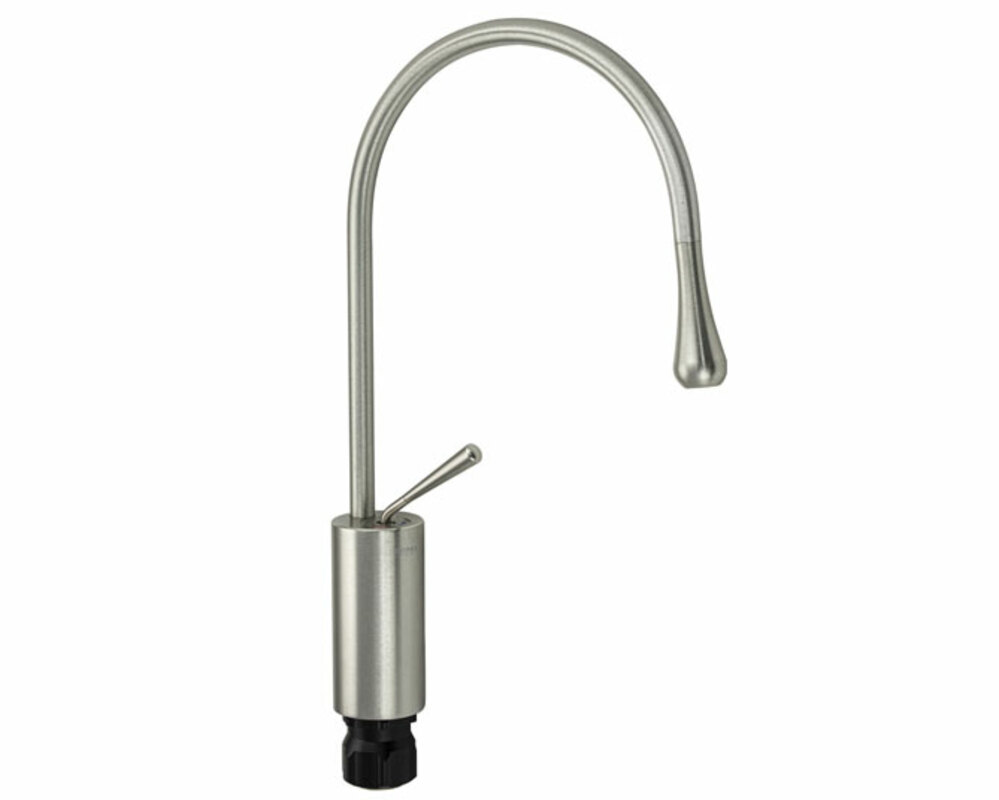 Смеситель для кухонной мойки и раковины, из авиационного алюминия,под нержавеющую сталь, боковой, с высоким С-образным элегантным изливом, шаровый, Крепление резьба - гайка, картридж d= 25 мм, ручка шток, Большой каплевидный аэратор для экономии воды. Габаритные размеры: высота 400 мм, длина 245 мм, диаметр посадочного седла 55 мм, длина резьбы 45 мм, длина подводки 400 мм, вес - 1,59 кг, объём - 0,011 м3. В комплекте паспорт, корпус с изливом, подводка 1/2, крепеж, набор прокладок