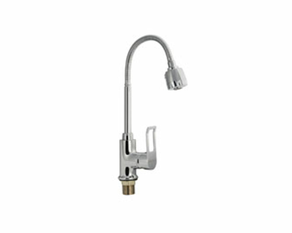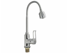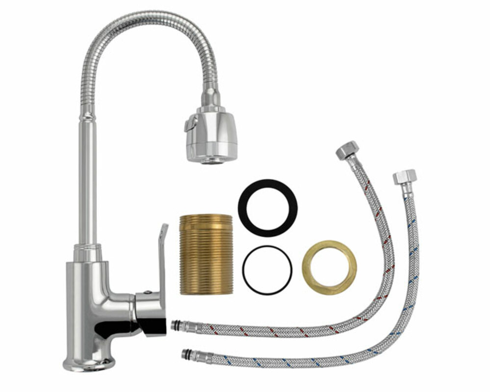Смеситель для кухонной мойки и раковин, литой корпус хромированного цвета, с высоким гибким изливом, с аэратором для экономии воды, шаровый.