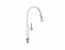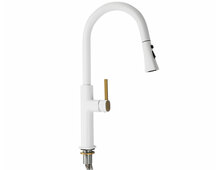 Смеситель для кухонной мойки и раковин, вытяжной излив - лейка с переключением режимов подачи воды, литой корпус белого цвета , из латуни , шаровый.