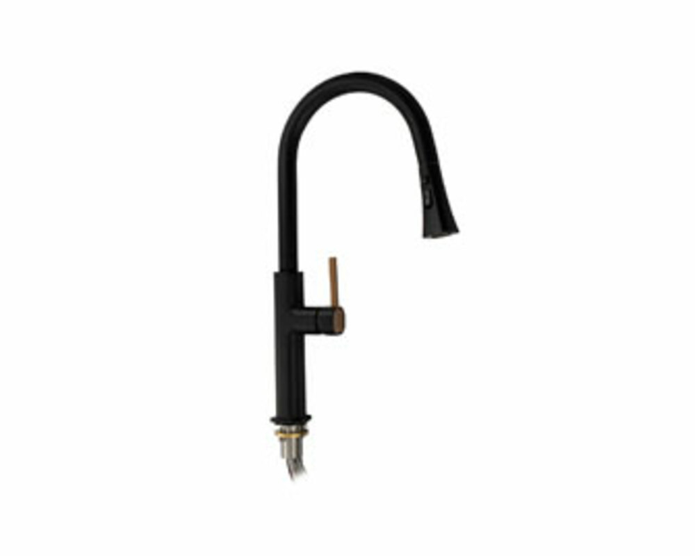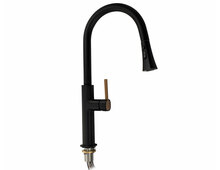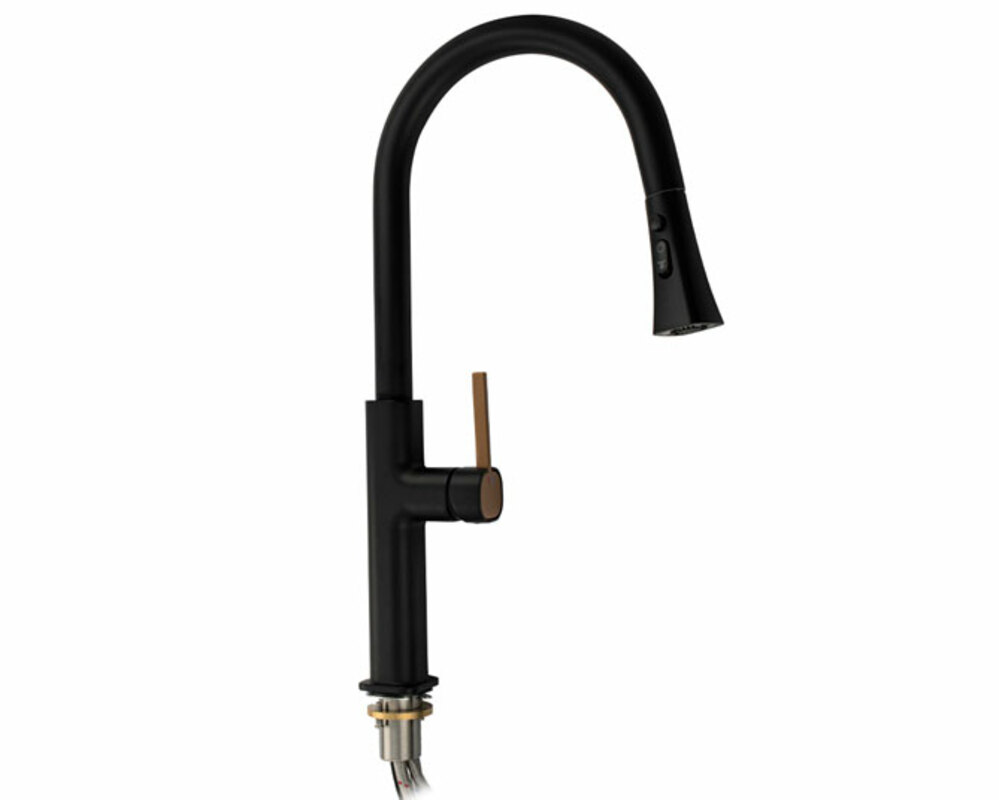 Смеситель для кухонной мойки и раковин, вытяжной излив - лейка с переключением режимов подачи воды, литой корпус черного цвета , из латуни , шаровый.