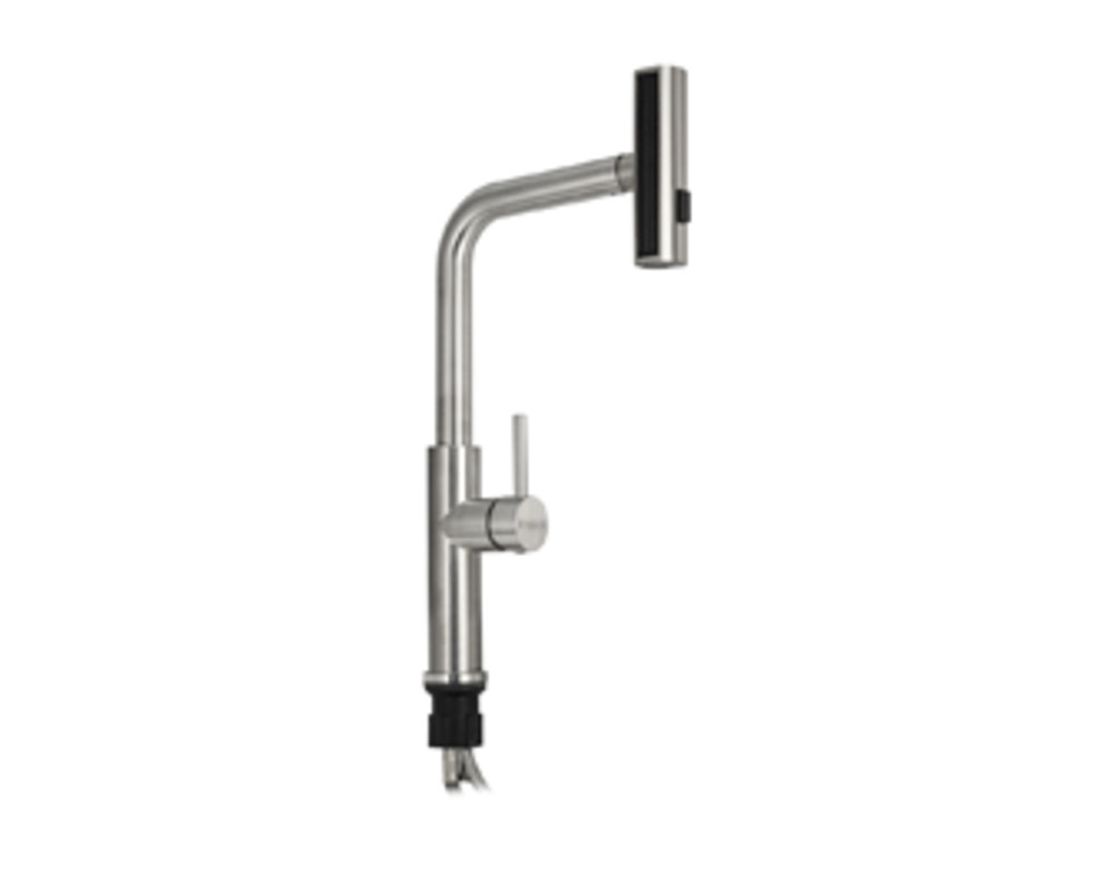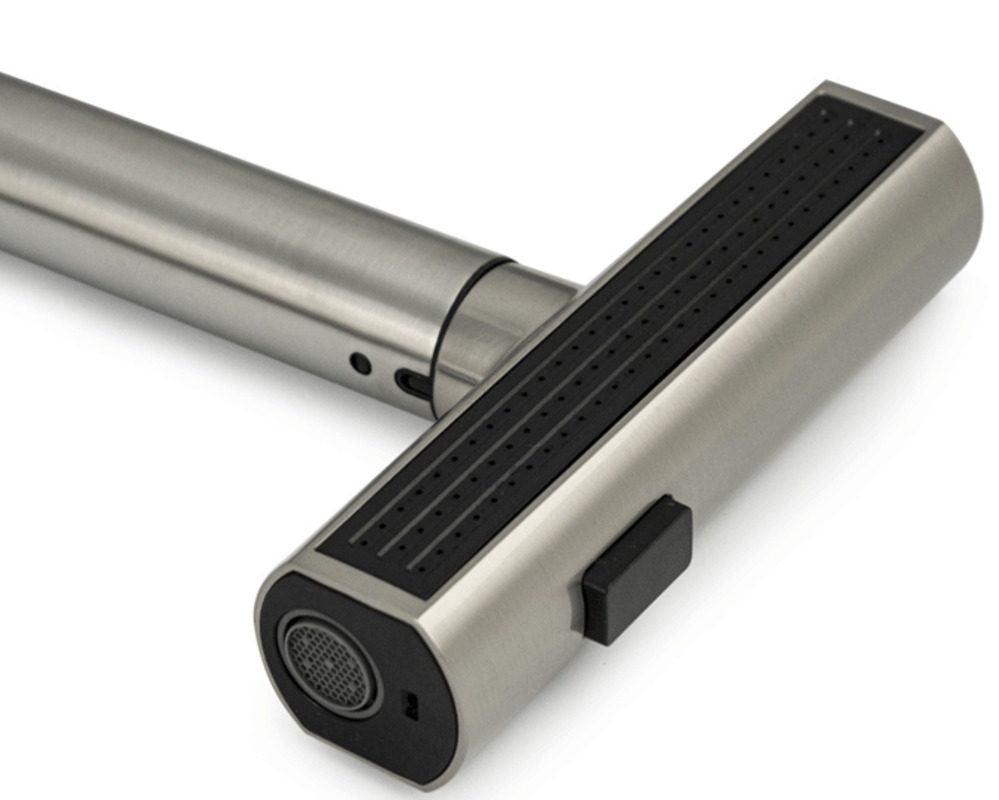 Смеситель для кухонной мойки и раковин, вытяжной излив - лейка с переключением режимов подачи воды, литой матовый корпус, из нержавеющей стали, цвет сатин, шаровый.