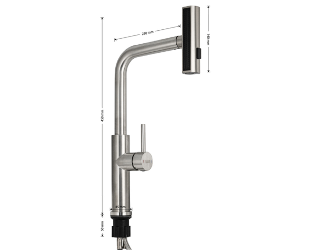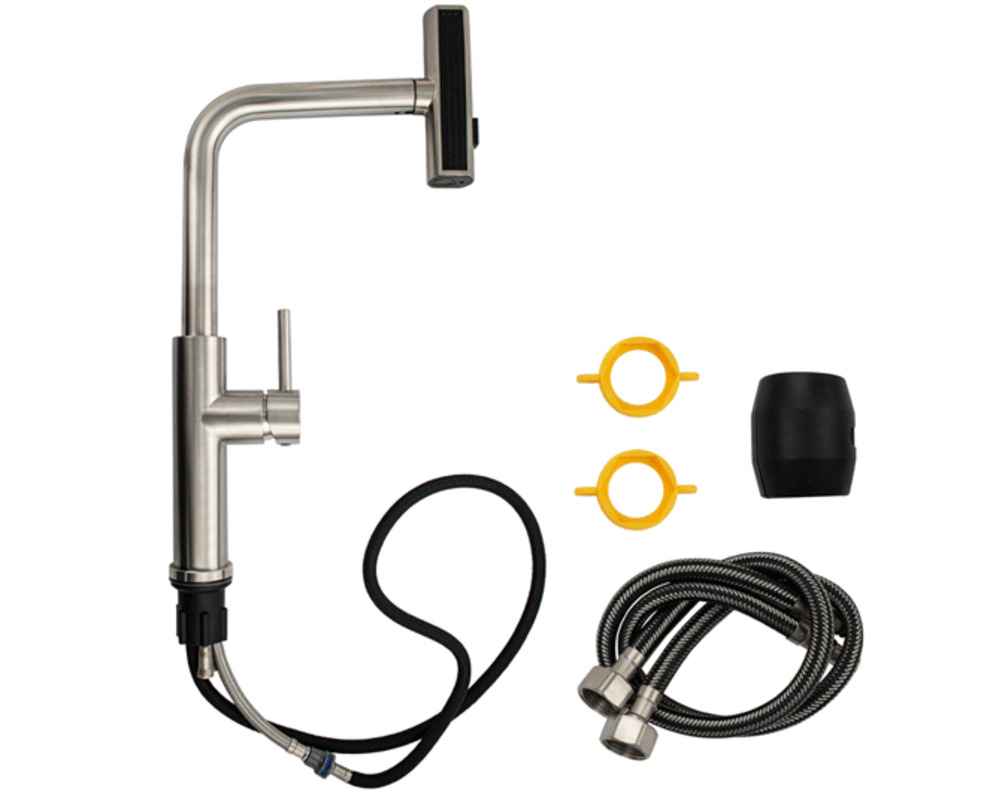 Смеситель кухонный MAGNUS 9131 Г-образный выдвижной, Сатин