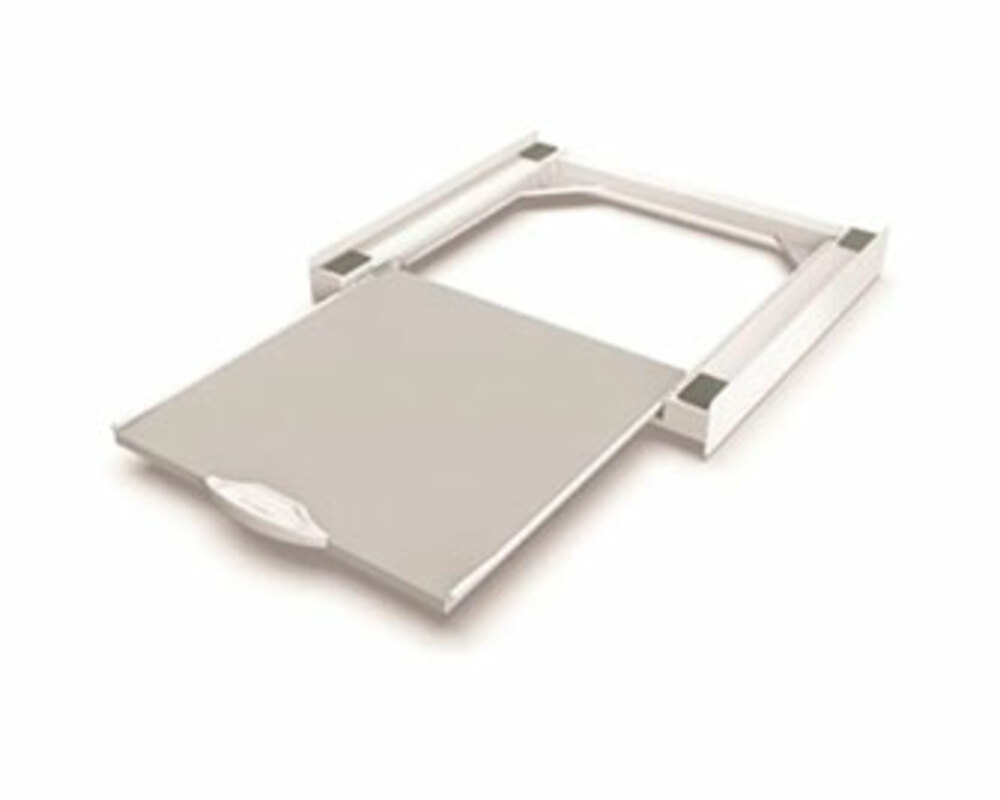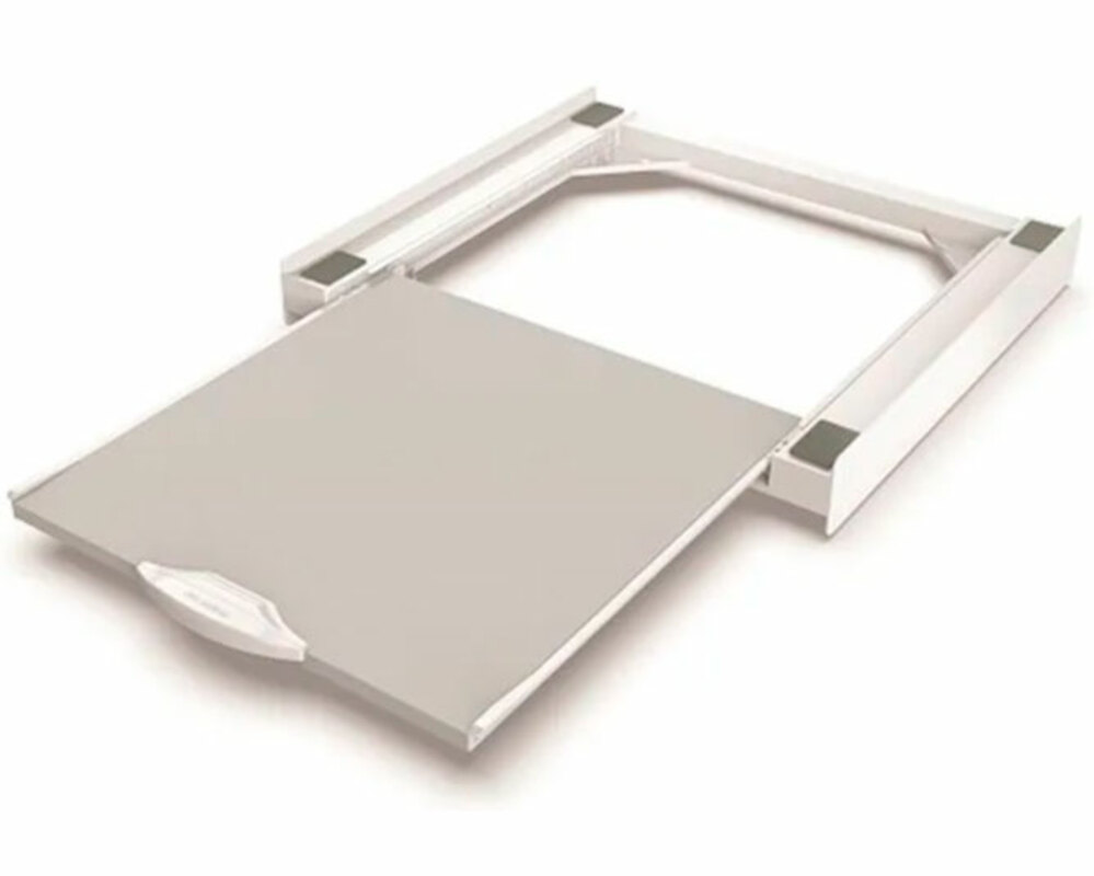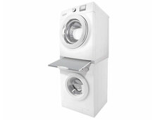 Прочная рама обеспечивает жесткое крепление, ремень-стяжка дает дополнительную надежность. Полка расположена на удобной для пользователя высоте. Универсальный дизайн, совместимый с большинством стиральных и сушильных машин с фронтальной загрузкой.