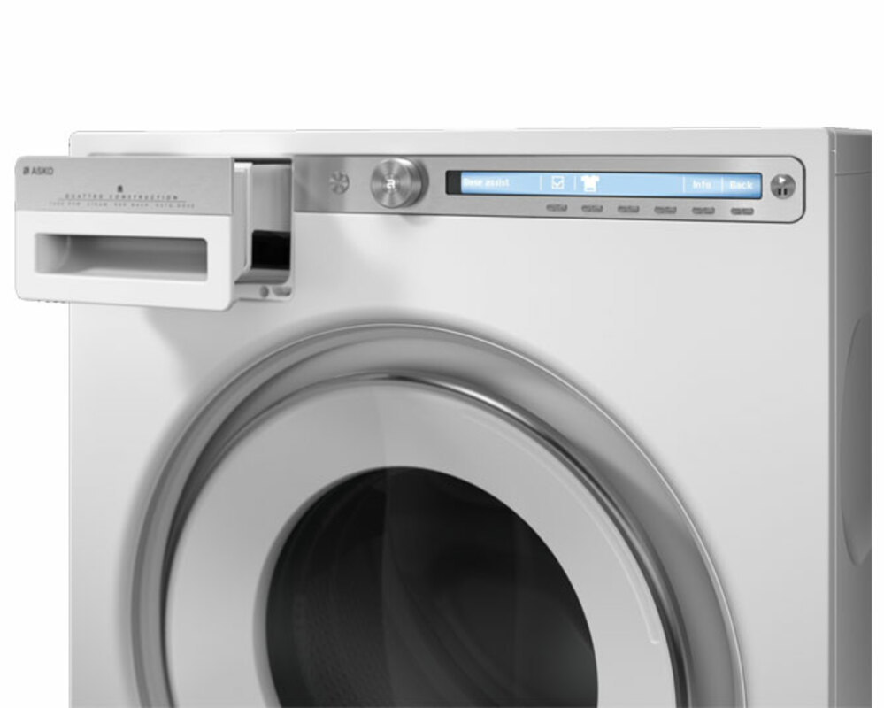 Опция Dose Assist позволяет рассчитать объем моющих средств для каждой конкретной загрузки. Нужно загрузить белье в барабан, выбрать программу стирки и активировать функцию Dose assist. Рекомендуемый объем моющего средства и кондиционера появится на дисплее. При расчете используется не только вес загруженного белья, тип ткани, температура стирки, жесткость воды.