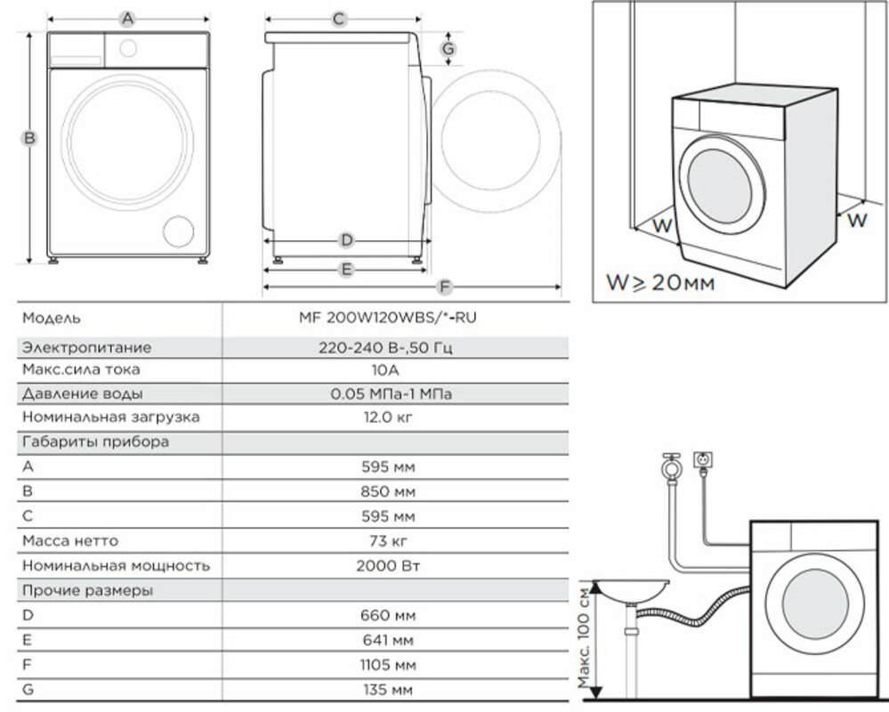 Стиральная машина Midea MF200W120WBS/W-RU решает проблему больших семей, где ежедневно накапливается значительное количество белья.