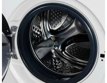 Объем барабана 76 литров из нержавеющей стали обеспечивает долговечность и гигиеничность. Функция дозагрузки белья позволяет добавлять забытые вещи после начала стирки, а автоочистка барабана поддерживает идеальную чистоту системы.