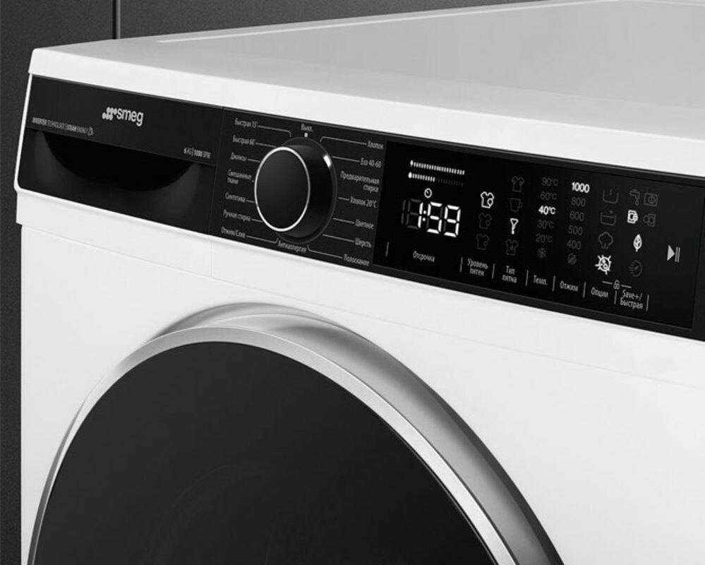 Эта опция указывает, когда необходима периодическая чистка фильтров, чтобы избежать ошибок и, таким образом, гарантировать безупречное функционирование сушки с течением времени. Удобное расположение фильтров делает обслуживание быстрым и чрезвычайно простым. Автобалансировка загрузки: обеспечивает идеальное распределение белья в барабане. В случае, если обнаружен дисбаланс, скорость вращения начинает регулироваться таким образом, чтобы равномерно перераспределять белье в барабане и, таким образом, уменьшать вибрацию. Acquastop: некоторые посудомоечные машины Smeg оснащены простым датчиком Acquastop: поплавок в нижней части, который необходим для предотвращения случайной утечки воды внутрь устройства. Эволюция Smeg в направлении более интеллектуальных и экологичных моделей привела к выбору инверторной технологии, которая значительно снижает энергопотребление. Блокировка управления: некоторые модели оснащены устройством для блокировки управления, чтобы не было возможности случайно изменить программу/ цикл приготовления, включить или выключить прибор. Переменная загрузка: во всех моделях стиральных машин присутствует система переменной загрузки, согласно которой машина автоматически меняет цикл стирки и время работы в зависимости от количества и типа загружаемого белья, что позволяет значительно экономить воду и энергию. мощность, до 30% по сравнению с версиями с фиксированной нагрузкой. 33 см: большой загрузочный люк диаметром 30-32-33 см делает загрузку и выгрузку белья проще и быстрее при максимальной простоте использования. Светодиодный дисплей: для отображения выбранных программ, функций и опций, а также времени до конца цикла.