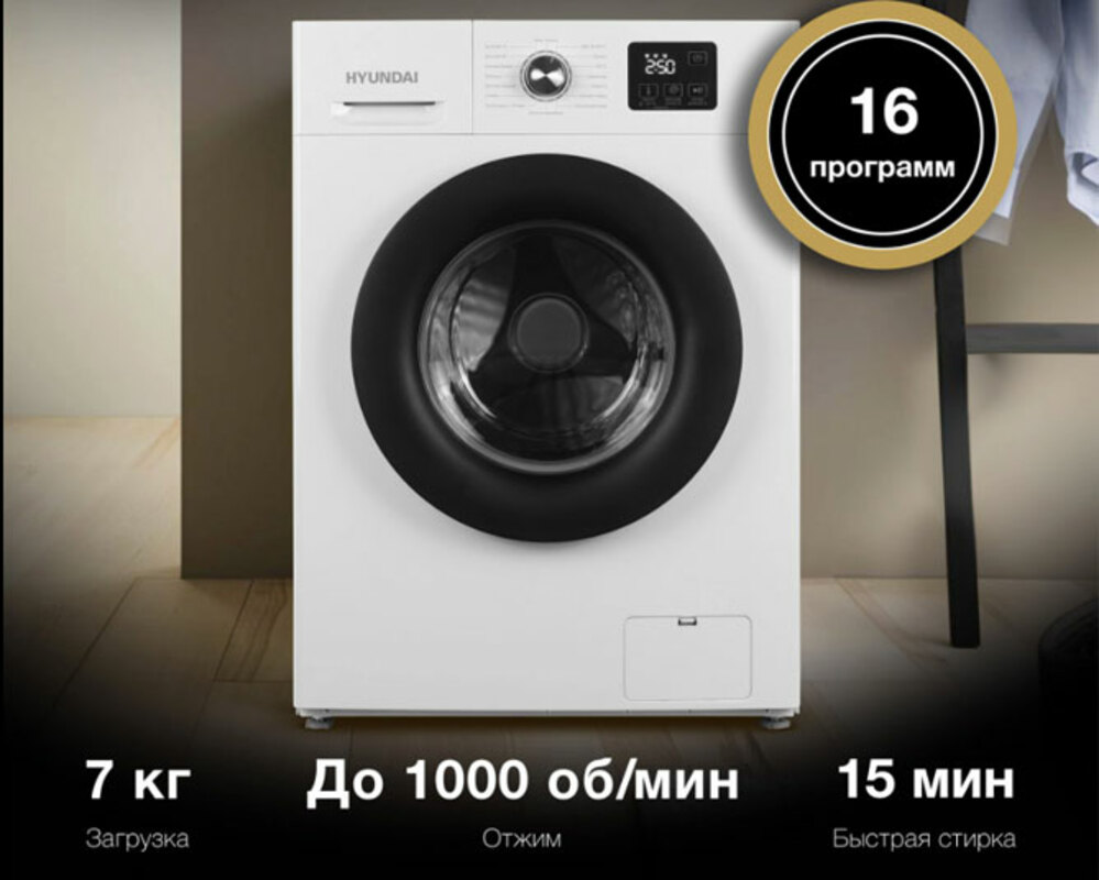 Стиральная машина отдельностоящая Hyundai WME7001 кл.:E фронт. макс.:7кг белый