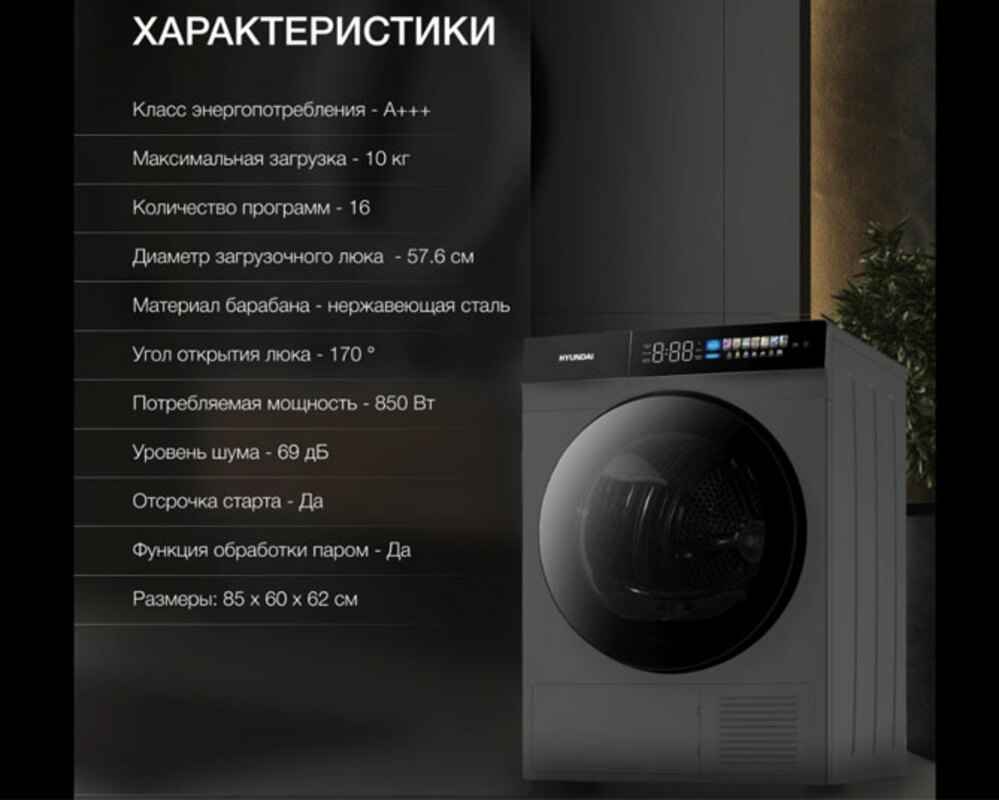 Сушильная машина — HYUNDAI DFE9430 - это высокотехнологичное устройство, разработанное для эффективной и комфортной сушки белья.