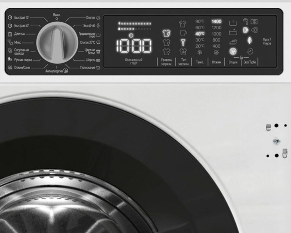 Программы Хлопок, Эко 40-60, Предварительная стирка, Хлопок 20°C, Цветное белье, Шерсть, Полоскание, Антиаллергия,