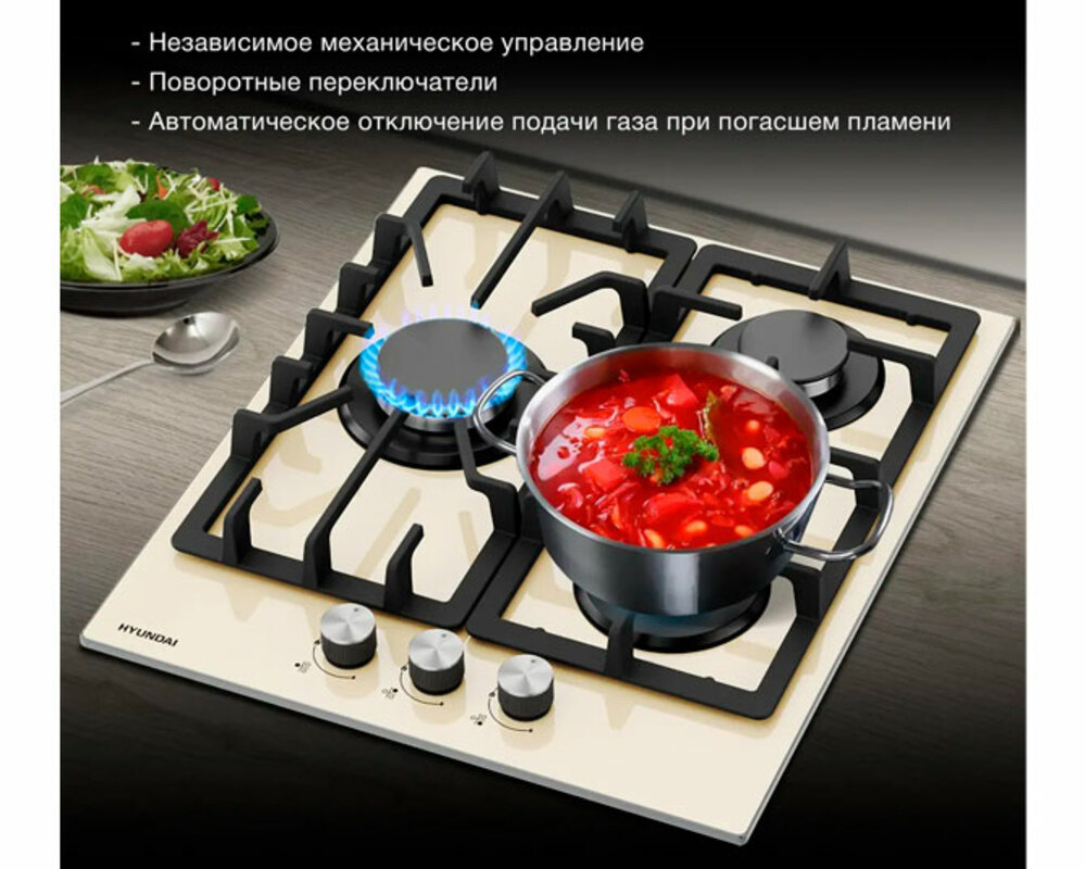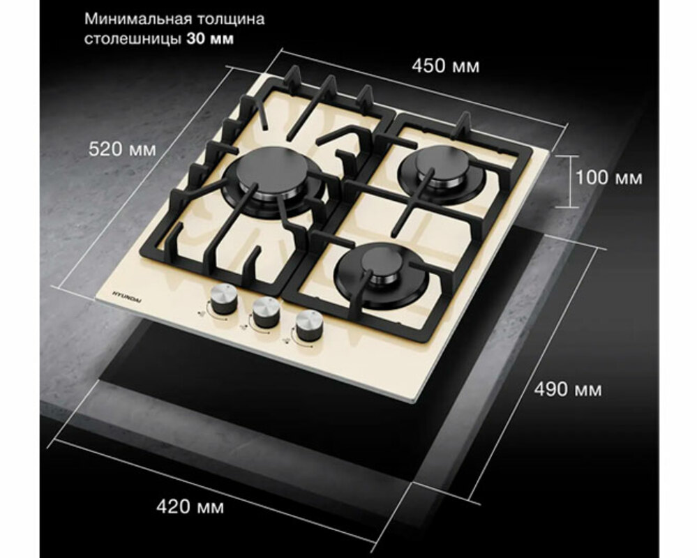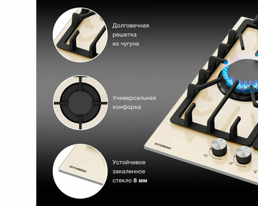 . Поверхность изготовлена из высококачественных материалов, устойчивых к механическим повреждениям и простых в уходе. Hyundai HHG 4333 BE – это не просто техника, а ваш надежный помощник на кухне, который прослужит долгие годы.
