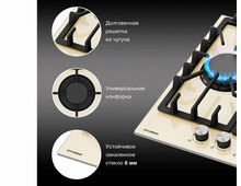 в элегантном бежевом цвете – идеальное решение для современной кухни. Эта газовая панель сочетает в себе надежность, удобство использования и привлекательный дизайн, который органично дополнит любой интерьер.