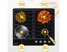 Характеристики Газовая варочная поверхность Simfer H60H41S570 (газ-контроль, WOK конфорка, чугунные решетки, черное стекло)