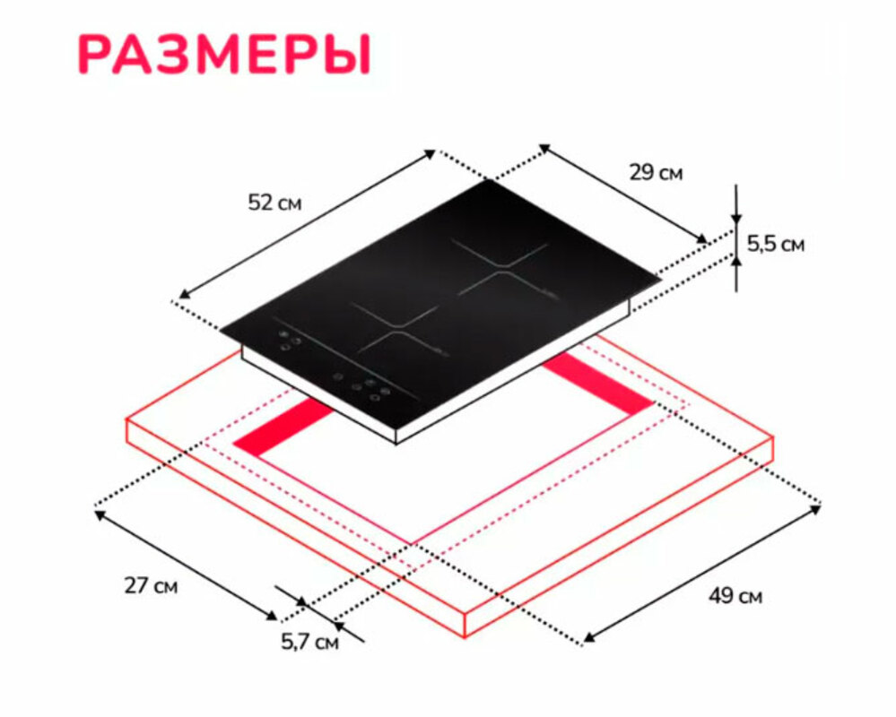 Эргономичная панель с параметрами 5,5х27х49 из стеклокерамики чёрного цвета станет гармоничным дополнением дизайна современной кухни.