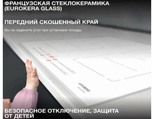 Стеклокерамическое покрытие обеспечивает быстрый нагрев, лёгкую очистку и устойчивость к износу.