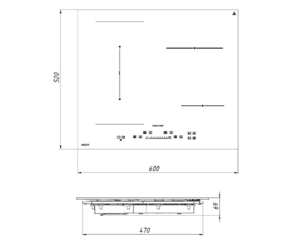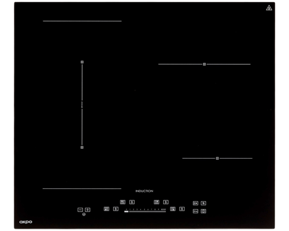 Варочная индукционная поверхность польского бренда AKPO (АКПО) с сенсорным слайдерным управлением, FLEX зоной, импульсным нагревом, а также функциями ускоренного нагрева (Booster) и распознавания посуды.