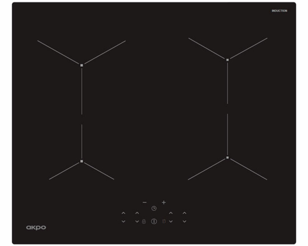 Индукционная варочная поверхность польского бренда AKPO (АКПО), с 9 уровнями мощности, сенсорным управлением каждой зоны, индикатором остаточного тепла, таймером отключения и кнопкой блокировки работы.