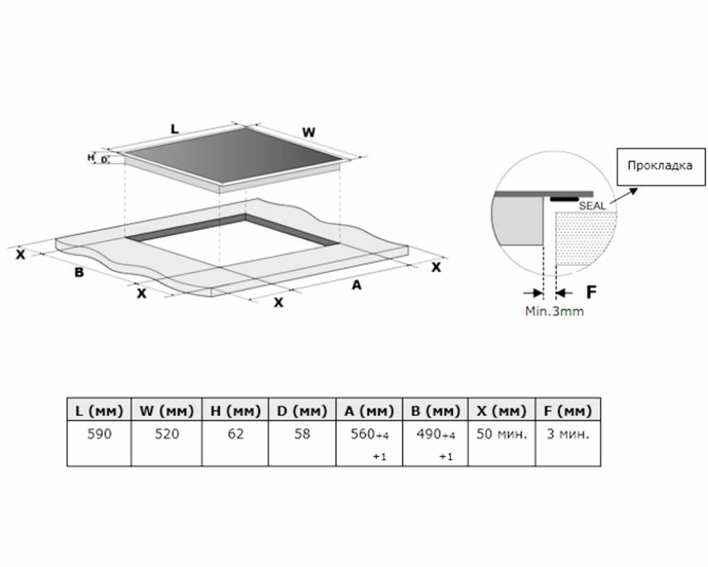 Размер для встраивания (В*Ш*Г) (мм) 560 х 490