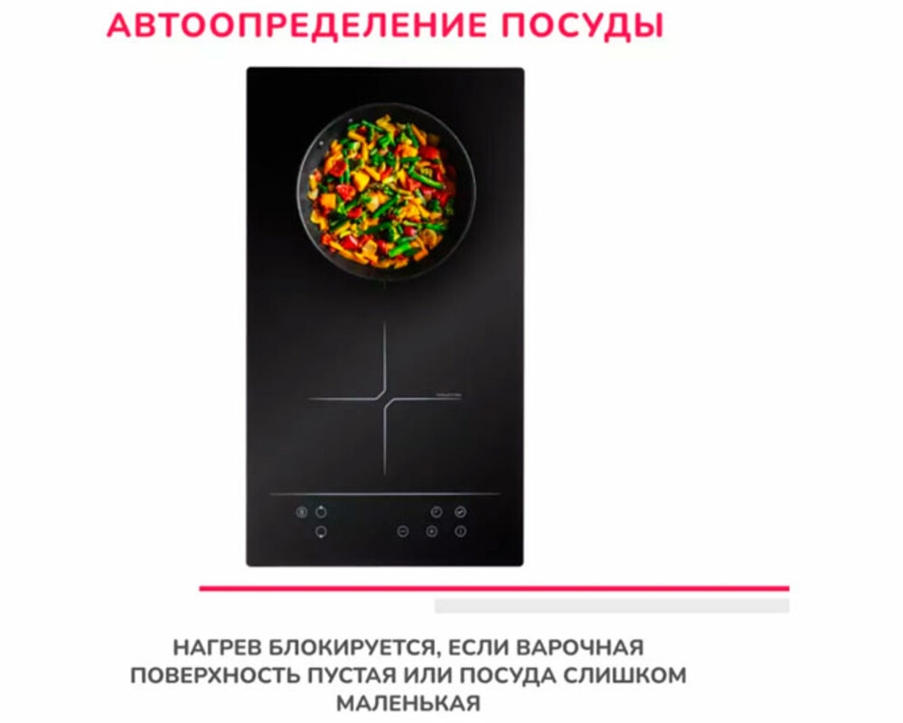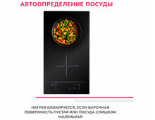 Для работы с панелью рекомендовано применять индукционную посуду, которую сможет автоопределить прибор, например, при наличии пустой ёмкости произойдёт отключение панели.