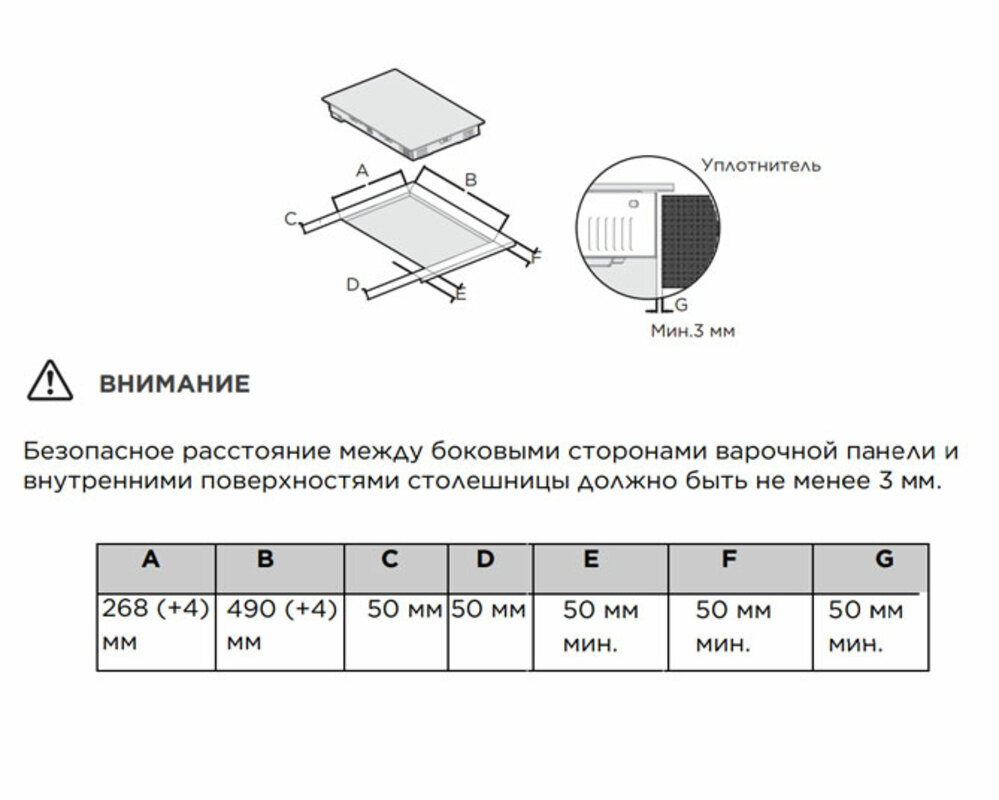 Габариты ниши для встраивания (В*Ш), мм 268*490