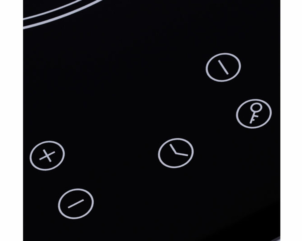 Сенсорная панель управления позволяет легким нажатием включать и выключать поверхность, выбирать один из девяти уровней мощность конфорки, устанавливать таймер выключения (до 99 минут).