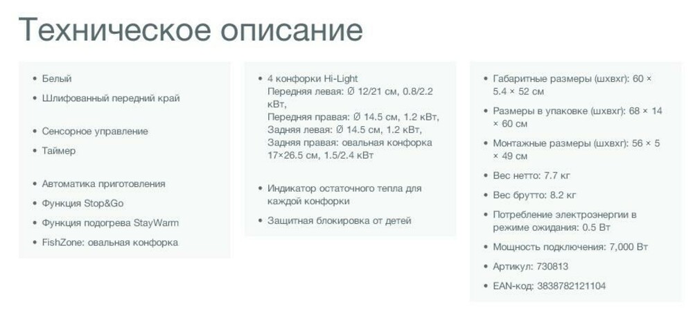 Задняя правая: овальная конфорка 17х26.5 см, 1.5/2.4 кВт