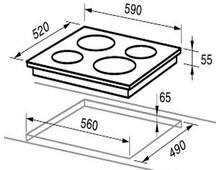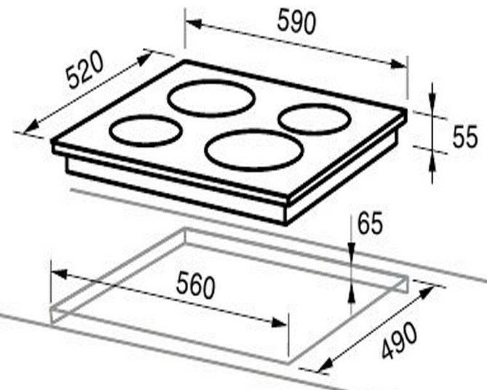 Внешние габариты В*Ш*Г(мм) 55 х 590 х 520