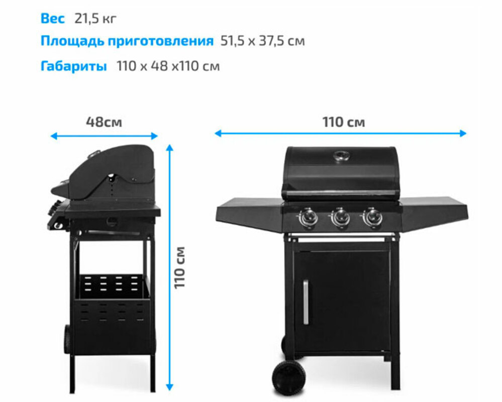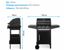 Размер рабочей поверхности гриля — 51,5x37,5 см. Вес устройства — 21, 5 кг.