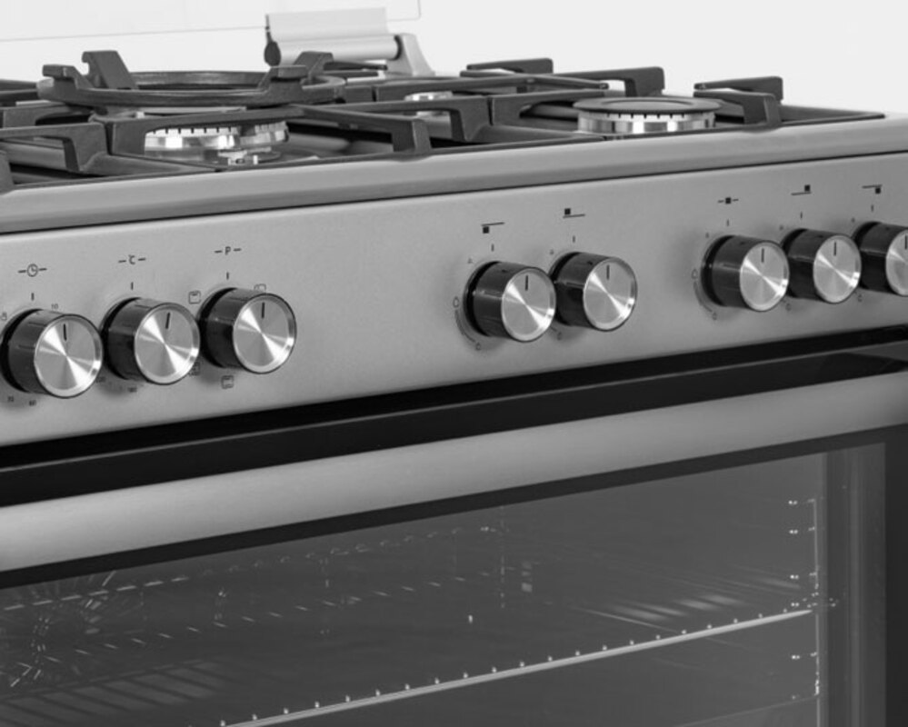 Модель оборудована пятью газовыми конфорками и электрическим духовым шкафом.